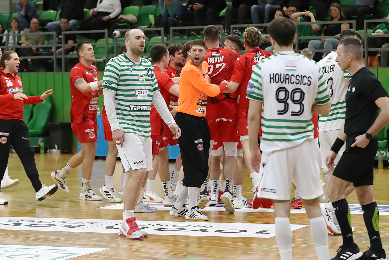 A második félidőt azonban rosszul nyitottuk: kihagytunk két hetest és emberhátrányba is kerültünk. Nagy Bence gyorsan ki is egyenlített (16:16), amire időkéréssel reagált vezetőedzőnk. A folytatásban érezhetően akadozott a támadásunk, de végig óriásit küzdött a csapat. A zöld-fehérek, az első góljuk után, a 46. percben tudtak ismét vezetni, ám az 52. minutumban úgy tűnt, eldöntheti a 2 pont sorsát az FTC. Ekkor kettős hátrányba kerültünk, s Bujdosó góljával 23:21-re módosult az állás. De nemhogy nem estünk szét, hanem lehúztuk a rolót, s jött egy Pipp-dupla, így nyílt maradt minden (24:24).
